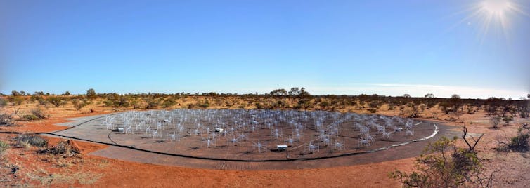 The Engineering Development Array (version 2), the prototype antenna system used to study radio signals from satellites, located at Inyarrimanha Ilgari Bundara, the CSIRO Murchison Radio-astronomy Observatory. ICRAR / Curtin University
