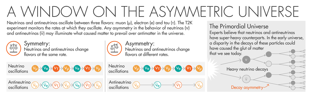 In the same underground observatory in Japan where, 18 years ago, neutrinos were first seen oscillating from one “flavor” to another — a landmark discovery that earned two physicists the 2015 Nobel Prize — a tiny anomaly has begun to surface in the neutrinos’ oscillations that could herald an answer to one of the biggest mysteries in physics: why matter dominates over antimatter in the universe.